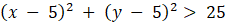 Punkty nienależące do koła o środku w punkcie S i promieniu r to zewnętrze koła, które można opisać nierównością: