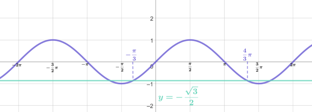 Przedziałów takich jest nieskończenie wiele, a różnica pomiędzy odpowiednimi punktami w kolejnych takich przedziałach wynosi 2π, co wynika z okresowości funkcji sinus. Zatem:
