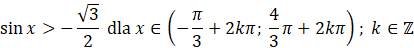 Zauważ, że rozpatrywanych przedziałów jest nieskończenie wiele, a różnica pomiędzy odpowiednimi punktami w kolejnych z nich wynosi 2π, co wynika z okresowości funkcji sinus.