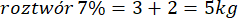 W tym zadaniu musisz obliczyć ile kilogramów wody, a ile soli jest w roztworze o stężeniu 7%, jeżeli do naczynia zawierającego pięcioprocentowy roztwór soli dolano 2 kg dziesięcioprocentowego roztworu soli i otrzymano roztwór o stężeniu 7%.