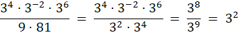 Zapisz wszystkie liczby jako potęgi 3. Skorzystaj z praw działań na potęgach i w odpowiedni sposób pododawaj i poodejmuj wykładniki potęg.