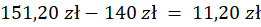 Cena netto towaru wynosi 140 zł, a cena brutto wynosi 151,20 zł. Ile % ceny netto to podatek VAT? O ile procent cena netto jest mniejsza od ceny brutto?