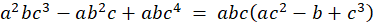 Znajdź takie wyrażenie, które można wyciągnąć przed nawias z pierwszego i z drugiego wyrażenia. W tym przypadku jest to abc.
