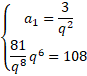 Ciąg jest monotoniczny, więc q wyraża się wzorem: i jest stałe. Z układu równań obliczamy iloraz ciągu: