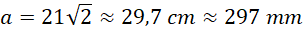 Ustal, jaką długość ma dłuższy bok, jeśli krótszy bok arkusza A4 ma długość 21 cm, arkusz papieru formatu A4 jest prostokątem, który po złożeniu na pół daje dwa arkusze formatu A5 będące prostokątami podobnymi do wyjściowego prostokąta.