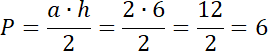 Z rysunku odczytaj długość podstawy i opadającą na nią wysokość w powstałym trójkącie, a następnie oblicz jego pole.