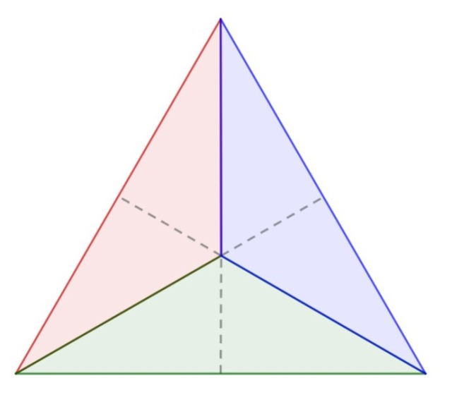 Dokonaj podziału trójkąta równobocznego na trzy trójkąty przystające.