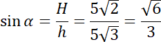 Z twierdzenia Pitagorasa wyznacz wysokość ściany bocznej. Następnie zauważ, że wysokość ostrosłupa, wysokość ściany bocznej i połowa krawędzi podstawy tworzą trójkąt prostokątny – skorzystaj z twierdzenia Pitagorasa, aby obliczyć długość ostrosłupa, a następnie sinus podanego kąta.