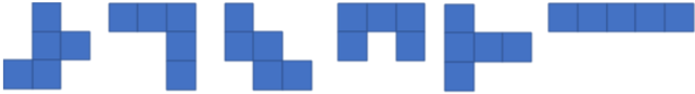 Narysuj sześć figur, każda z pięciu kwadratów. Wybierz następnie tą z najmniejszym polem.