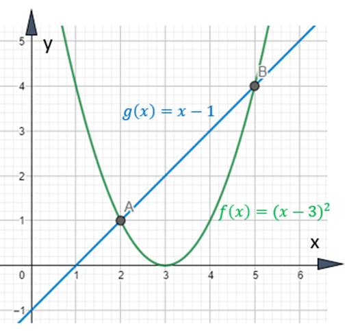 f(x) = g(x) ⇔ x ⋲ {2, 5}