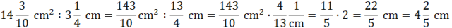 Pamiętaj, pole równoległoboku to iloczyn długości jego podstawy i wysokości, która na nią pada. Brakujący czynnik znajdziesz, dzieląc pole przez podaną wysokość: zamień liczby mieszane na ułamki niewłaściwe i pomnóż liczbę pierwszy ułamek przez odwrotność drugiego ułamka. Nie zapomnij o jednostkach długości i powierzchni.