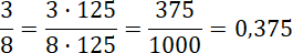 Najpierw musisz rozszerzyć ułamek. Potrzebujemy w mianowniku liczby 1000, czyli licznik i mianownik trzeba pomnożyć przez 125. Następnie przed przecinkiem postaw 0, bo ten ułamek nie ma całości, a po przecinku wpisz liczbę z licznika. Po przecinku musisz się znaleźć tyle miejsc, ile zer liczy mianownik rozszerzonego ułamka zwykłego.