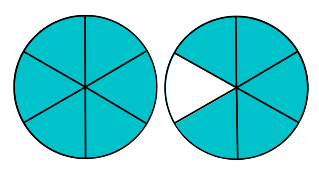 kolorem zamaluj jedno całe koło i pięć części z drugiego