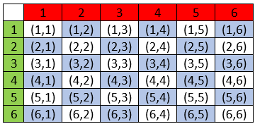 Aby dobrze zauważyć wszystkie możliwości rzutów, można posłużyć się tabelką: