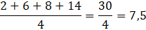 Nieparzystą średnią arytmetyczną z czterech liczb parzystych jest średnia arytmetyczna liczb 2, 8, 6 i 14.