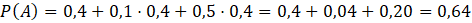 1 – (0,5 + 0,4) = 1 – 0,9 = 0,1