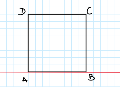 Narysuj kwadrat i zaznacz punkty symetryczne do jego wierzchołków względem prostej zawierającej jeden z boków kwadratu.