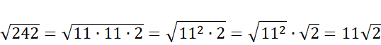 Rozłóż liczbę pod pierwiastkiem na iloczyn mniejszych liczb, a następnie skorzystaj z własności działania na pierwiastkach , .
