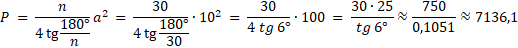 Oblicz pole 30-kąta foremnego o boku długości 10.