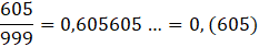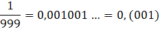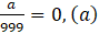 Odp. Ułamek właściwy, mający w mianowniku 999, po zamianie na ułamek dziesiętny ma w rozwinięciu dziesiętnym w okresie tylko liczbę z licznika. Okres ma zawsze długość trzech cyfr, więc jeśli liczba składa się z mniejszej ilości cyfry to reszta jest wypełniana zerami.