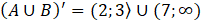 Aby ułatwić sobie to zadanie możesz narysować oba przedziały na osi liczbowej. Dopełnieniem sumy są wszystkie liczby, które nie należą do pierwszego lub drugiego przedziału. Sumą dopełnieniem są wszystkie liczby, które nie należą do części wspólnej obu przedziałów.