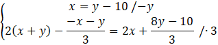 Na początku zadania musisz uprościć drugie równanie (mnożąc je przez mianownik ułamka) i przestawić w obu równaniach wszystkie niewiadome na lewą stronę, a liczby na prawą. W kolejnym kroku musisz przemnożyć równania tak, aby liczby stojące przy wybranej niewiadomej w obu równaniach były sobie przeciwne. Następnie musiszdodać oba równania do siebie stronami. Jeśli po uproszczeniu równania pozostanie w nim jedna niewiadoma to układ jest oznaczony (ma dokładnie jedno rozwiązani). Jeśli po uproszczeniu niewiadome i liczby zredukują się ze sobą, a lewa strona równania jest taka sama jak prawa to układ jest nieoznaczony (ma nieskończenie wiele rozwiązań). Jeśli po uproszczeniu niewiadome i liczby zredukują się ze sobą, a obie strony równania są różne to układ jest sprzeczny (nie ma rozwiązania).