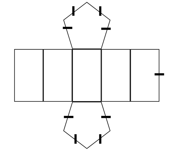 W tym zadaniu ustal, ile krawędzi trzeba rozciąć w model graniastosłupa pięciokątnego, aby po rozłożeniu uzyskać jego siatkę.