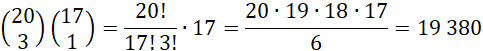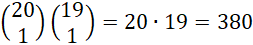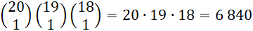 Wybierasz jedno miejsce spośród 20, na którym umieścisz cyfrę 2, jedno z 19 na cyfrę 3 i jedno z 18 na cyfrę 4, na pozostałych miejscach będą stały jedynki: