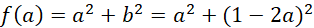 W tym zadaniu musisz wykorzystać informację, że 2a+b=1 i określić dla jakich wartości a i b suma a²+b² przyjmuje wartość najmniejszą.