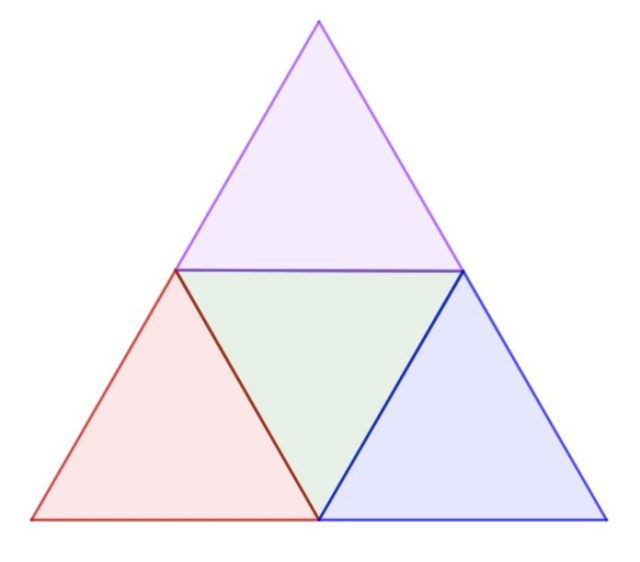 Dokonaj podziału trójkąta równobocznego na cztery trójkąty przystające.