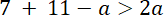 W tym zadaniu musisz wyznaczyć wszystkie liczby a, a>0, dla których istnieje trójkąt o bokach mających długość 2a, 7, 11 - a.