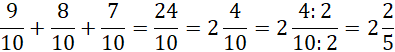Dodając ułamki zwykłe, dodaj do siebie liczniki, a mianownik w wyniku pozostaw taki jak w składnikach dodawania. Zapisz podane ułamki niewłaściwe w postaci liczby mieszanej poprzez podzielenie licznika przez mianownik, wynik to całości a reszta to licznik w liczbie mieszanej. Mianownik pozostaje bez zmian. Można skrócić ten wynik przez 2, żeby dostać nieskracalną postać.