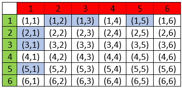 Aby dobrze zauważyć wszystkie możliwości rzutów, można posłużyć się tabelką: