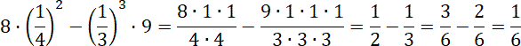 Zgodnie z kolejnością działań – najpierw wykonaj mnożenie, a następnie odejmij. Poszukaj elementów, które skrócą się. Aby odjąć od siebie ułamki zwykłe, musisz doprowadzić je do wspólnego mianownika.