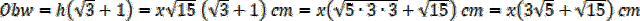 W tym zadaniu musisz policzyć obwód trójkąta, wiedząc, że jest to trójkąt 30° 60° 90° oraz znając długość dłuższej przyprostokątnej: