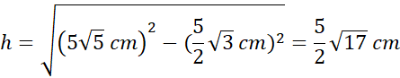 W kolejnym kroku oblicz wysokość tego zacieniowanego trójkąta. W tym celu ponownie skorzystaj z twierdzenia Pitagorasa, jako jedną z przyprostokątnych przyjmując połowę jego podstawy.