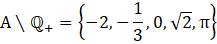 Musisz wyznaczyć różnice zbioru A i zbioru liczb wymiernych dodatnich.