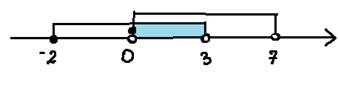 Narysuj oś liczbową. Zaznacz na osi podane przedziały liczbowe. Najpierw wykonaj działanie w nawiasie – wyznacz część wspólną przedziałów liczbowych. Następnie wyznacz różnicę przedziałów liczbowych.