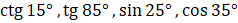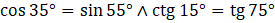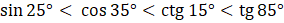 Funkcja tangens dla kątów ostrych jest rosnąca, więc im mniejszy kąt, tym mniejsza wartość i funkcja sinus dla katów ostrych jest rosnąca, zatem im większy kąt, tym większa wartość oraz tangens powyżej kąta 45 stopni jest większy od 1, a największa możliwa wartość sinusa to 1.