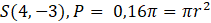 Wyznacz równanie okręgu, którego środek znajduje w punkcie S(4, -3) oraz jest ograniczone przez pole koła P =