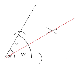 Połącz wierzchołek kąta z punktem przecięcia się łuków: