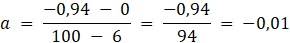 Szukany współczynnik kierunkowy siecznej wykresu wynosi -0,01.