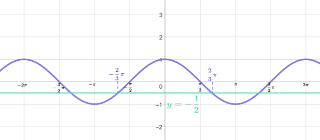 Przedziałów takich jest nieskończenie wiele, a różnica pomiędzy odpowiednimi punktami w kolejnych takich przedziałach wynosi 2π, co wynika z okresowości funkcji cosinus. Zatem: