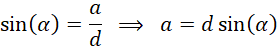 Zauważ, że po poprowadzeniu przekątnej prostokąta powstał trójkąt równoboczny, w którym jest ona przeciwprostokątną. Skorzystaj z funkcji sinus oraz cosinus podanego kąta, aby obliczyć długości boków tego czworokąta. W tym celu odczytaj z tablic trygonometrycznych przybliżone wartości tych funkcji. Następnie oblicz obwód prostokąta jako podwojoną sumę długości jego wymiarów.