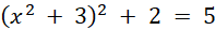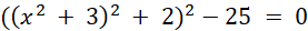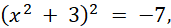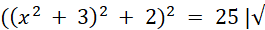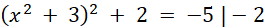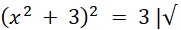 Pierwiastkujemy obustronnie równanie, przez co otrzymujemy 2 równania kwadratowe. Drugie równanie jest sprzeczne. Jeszcze raz pierwiastkujemy obustronnie równanie, aby uzyskać dwa równania kwadratowe, z których możemy uzyskać rozwiązania. Oba te równania są sprzeczne