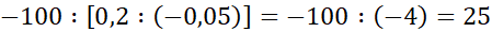 Pamiętaj, iloraz liczb ujemnych jest dodatni, a iloraz liczby dodatniej i ujemnej – ujemny. Na początek podziel liczby w nawiasie, to znaczy pomnóż 0,2 przez