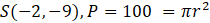 Wyznacz równanie okręgu, którego środek znajduje w punkcie S(-2, -9) oraz jest ograniczone przez pole koła P =
