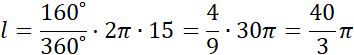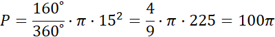 W tym zadaniu oblicz długość zaznaczonego łuku okręgu oraz pole zacieniowanej figury, wiedząc, że α = 200˚ i r = 15.