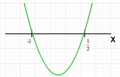 Zaznacz na osi OX rozwiązania równania. Naszkicuj parabolę skierowaną ramionami do góry, przechodzącą przez te punkty. Nie musisz wyznaczać wierzchołka paraboli.