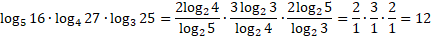 Sprowadź wszystkie logarytmy do logarytmów o podstawach 2. Zauważ, że po skróceniu poszczególnych liczników i mianowników zostanie prosty iloczyn .